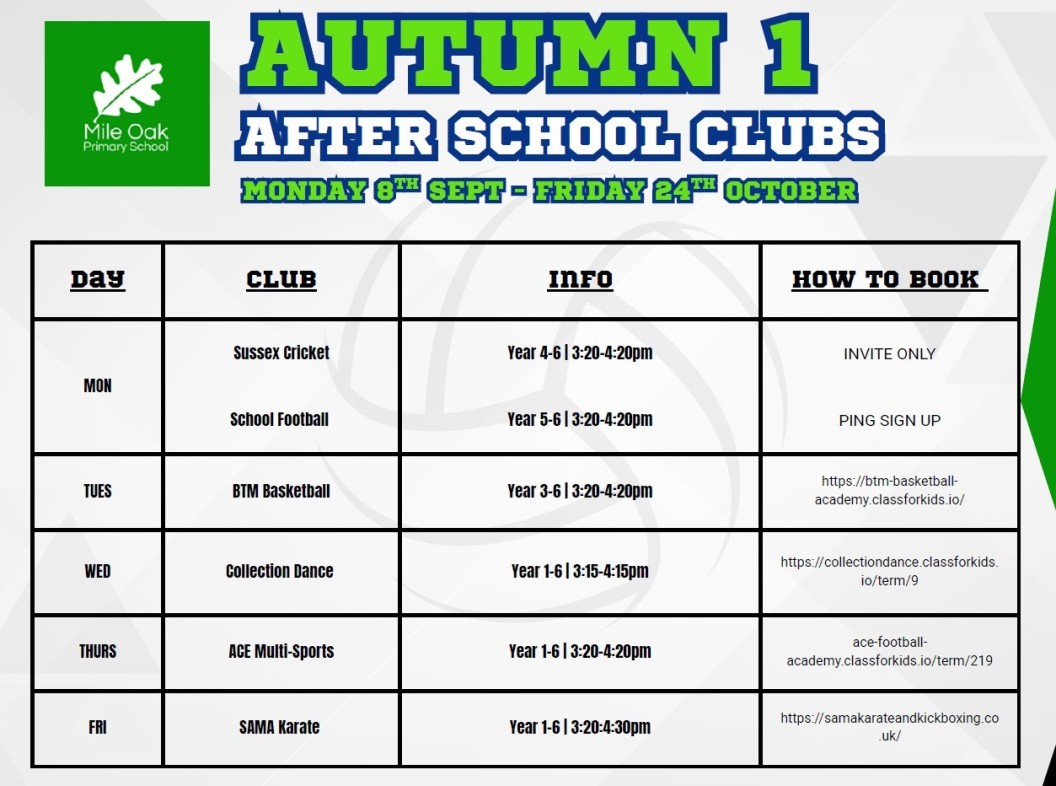 For more information on this club and how to book, please contact the school office on office@mileoak.brighton-hove.sch.uk